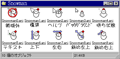 YASUIさんからの提案で、いろんな色の雪だるまカーソルにしてみました。四季に合わせて入れ替えるのもいいかもー。