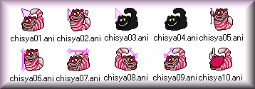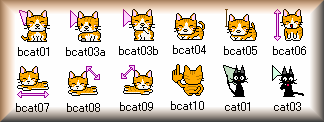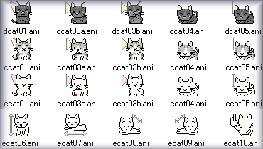 猫のカーソル。色違いで3種セットになってます(黒、灰色、白)。あ、三毛猫つくるの忘れた。。。