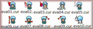 映画の宣伝なのかな、エヴァンゲリオンがテレビで2週連続で放映されていたので初めて見てみた。…。でWebサイトにはエヴァのカーソルが見当たらないので、少なくとも綾波レイが見つからなかったので作ってみた。(株)ガイナックスのガイドラインによると自作でも動画は禁止との事なので、今回は静止画カーソルになりました。